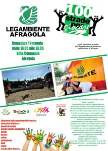 storica campagna di Legambiente per la promozione della raccolta differenziata, che fa tappa ad Afragola su iniziativa dell’Assessorato all’Ambiente dell’Amministrazione Comunale retta dall’on. Domenico Tuccillo, retto da Salvatore Iavarone. L’iniziativa punta ad incentivare e pubblicizzare il riciclo e viene organizzata su proposta di Legambiente Afragola dando spazio alle associazioni locali. In tutta Italia Legambiente con «100 strade per giocare» dà spazio e voce a i bambini con giochi tradizionali per una riappropriazione comune del territorio, delle strade e delle città.