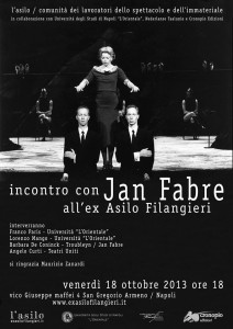 In occasione della mostra Stigmata. Action & Performances (1976-2013) al MAXXI e della presentazione dei suoi lavori al Roma Europa Festival, Jan Fabre sarà in Italia e farà tappa a Napoli, all’ex Asilo Filangieri, per presentare l’edizione italiana dei suoi diari.