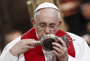 Improvvisa tutto il pomeriggio, papa Francesco. Parla ai detenuti, circa 100, con i quali ha pranzato nel carcere di Poggioreale: «Dio è presente anche in questi luoghi», dice ai 12 seduti con lui e con il procuratore delle carceri. Poi li saluta uno a uno prima di arrivare in cattedrale per l’incontro con le religiose, i religiosi e i sacerdoti. Al termine dell’incontro il cardinale Sepe annuncia che «il sangue di San Gennaro si è già sciolto per metà» e il Papa ribatte: «Il vescovo dice che il sangue è per metà sciolto, segno che il santo ci vuole bene per metà, dobbiamo convertirci un po’ tutti perché ci voglia più bene».
